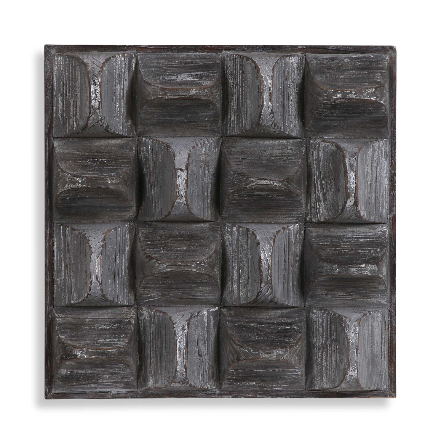 - A Contemporary Take On Rustic Decor, This Wood Wall Panel Features 3-dimensional Scooped Fir Wood Blocks With A Distressed, Aged Gray Wash And Silver Highlights.