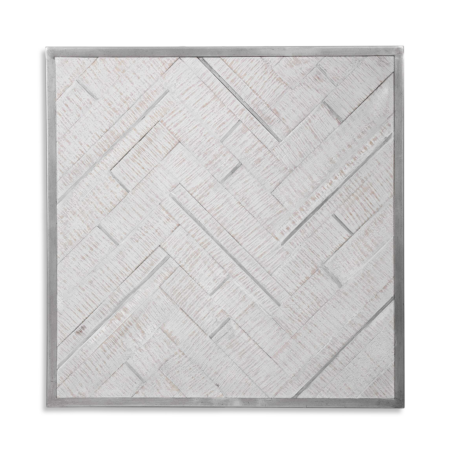 - This Wood Wall Panel Personifies Modern Coastal Style With Whitewashed Pine Wood In A Classic Herringbone Pattern Accented By Sleek Silver Bar Inserts. Each Piece Is Paired With A Distressed Brushed Silver Frame And May Be Hung Horizontal Or Vertical.