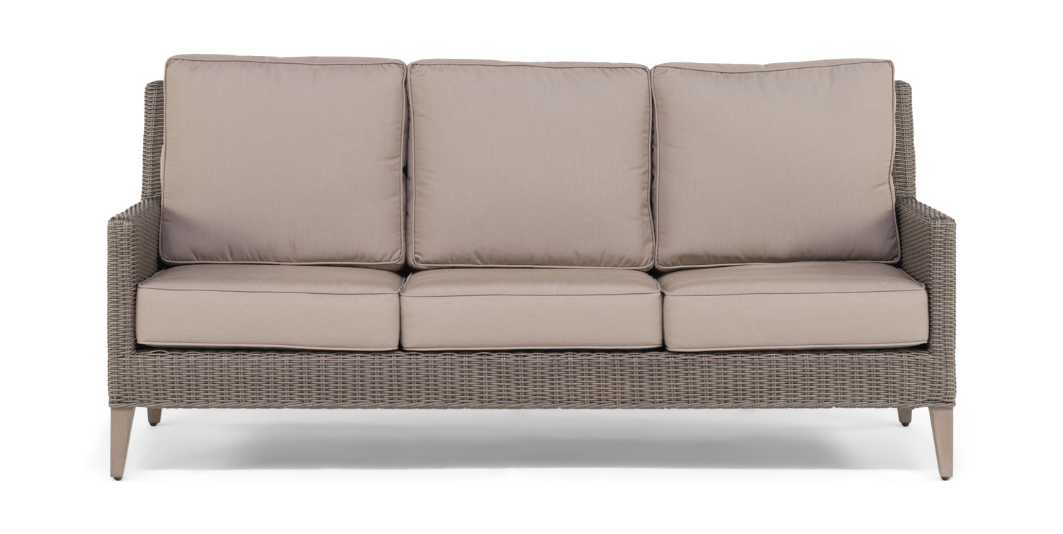 Pinehurst Sofa, is the perfect choice for outdoor enjoyment. Crafted from an aluminum frame with a taupe driftwood finish, this stylish piece features a half-round wicker weave taupe and Sunseal acrylic canvas taupe cushions. The foam core seat and polyfill back provide comfortable seating while maintaining its beautiful design. For added protection, we recommend ordering the protective cover for longevity and to help keep your furniture in peak condition. Unfortunately, custom orders are not available at this time.